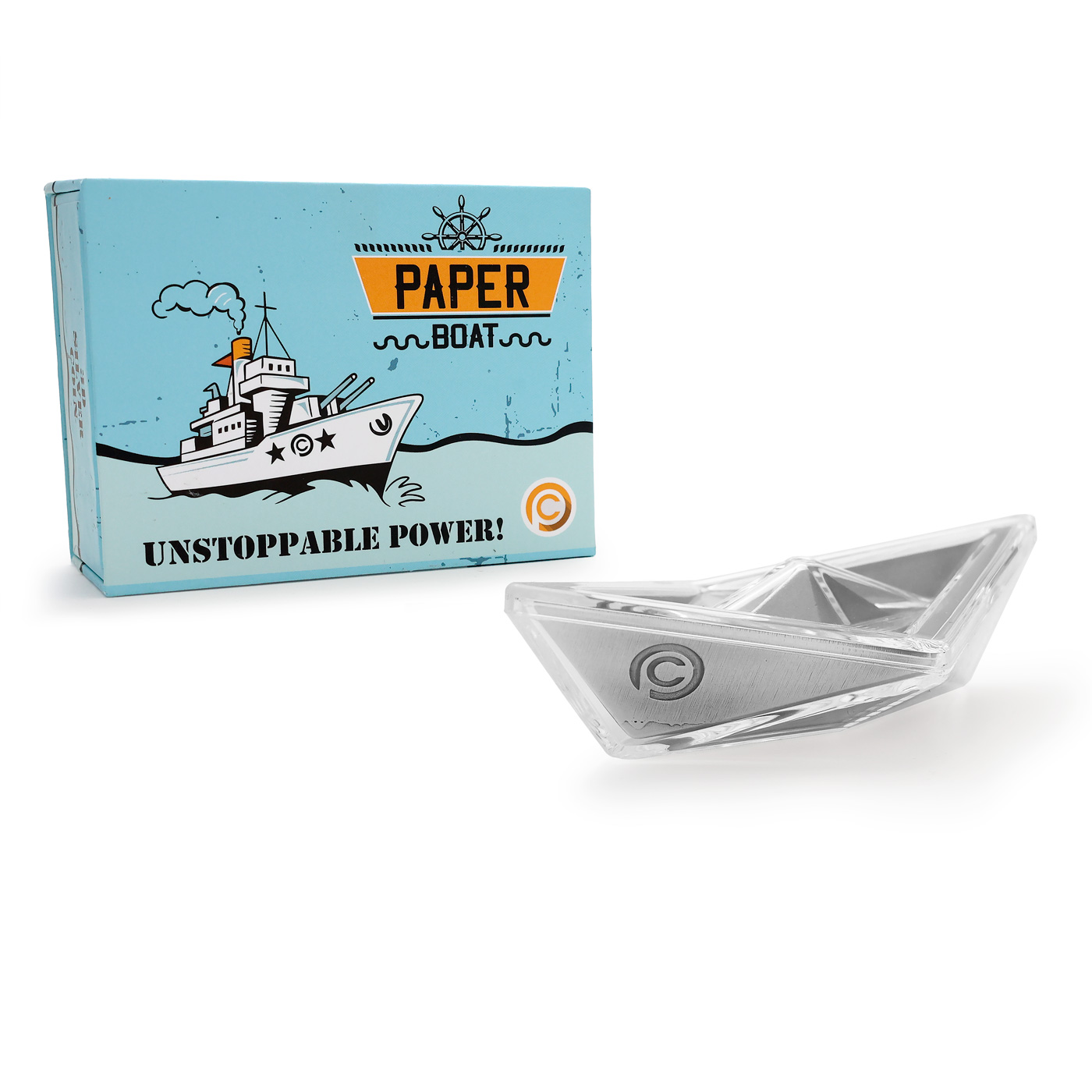 Špeciálne tvarovaná minca ponúka precízne spracovaný 3D model zloženej papierovej lodičky vrátane fliačkov od vody na spodnej strane, ktoré vznikli prvou plavbou v kaluži. Informácie o nominálnej hodnote, krajine pôvodu, roku emisie, údajmi o váhe a rýdzosti kovu a celkovým počtom vyrazených kusov, sú umiestnené na rovnakých miestach ako u skutočných námorných lodí.