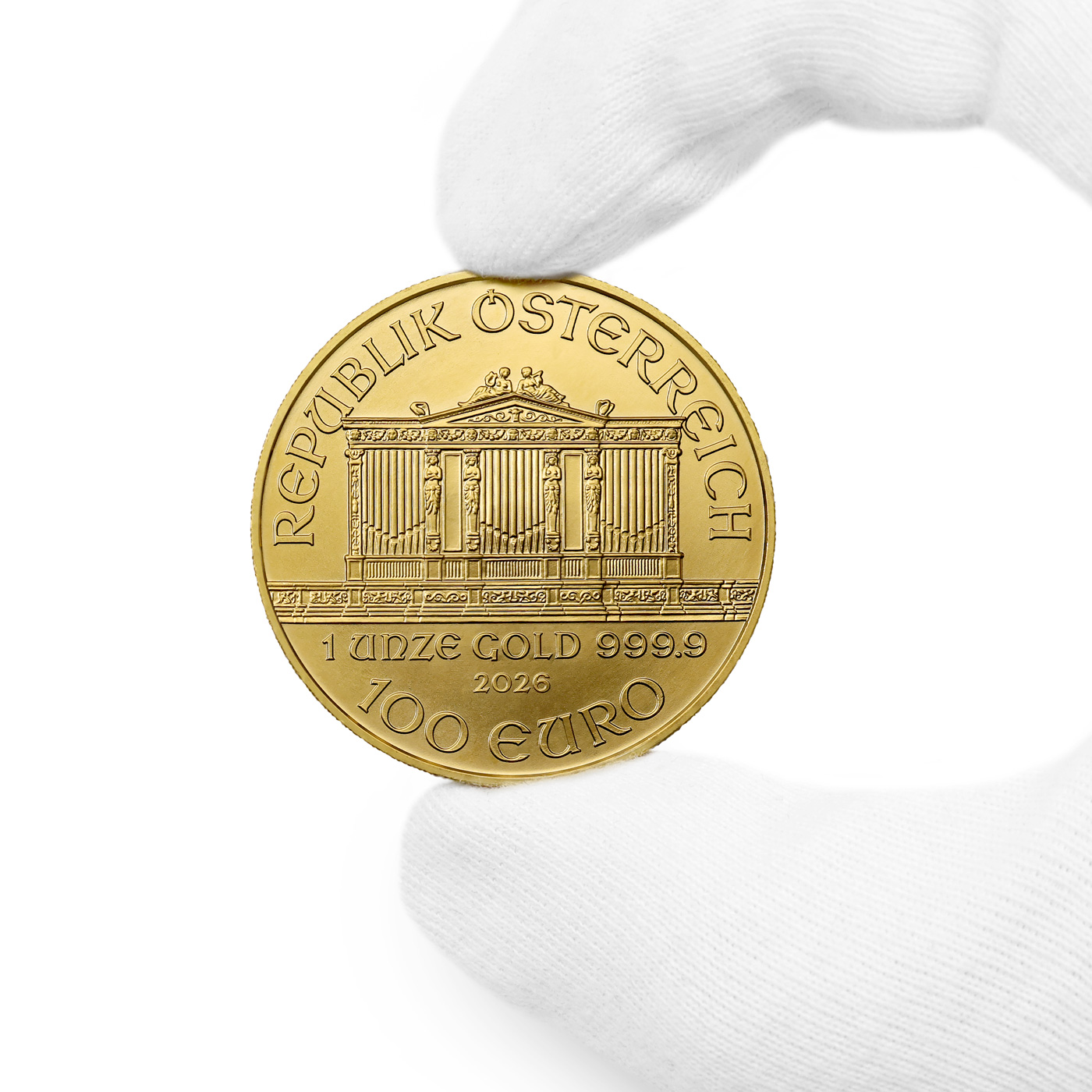 Wiener Philharmoniker (Viedenská filharmónia), jedna z najoblúbenejších európskych investičných mincí, ktorá je razená od roku 1989 tradične v 4 velkostiach a hmotnostiach (1 unca, 1/2 unce, 1/4 unce a 1/10 unce). Viedenská filharmónia, ktorá sa stala predlohou, pre túto mincu, je považovaná za jedno z najlepších hudobných telies sveta. Mince sú razené z najrýdzejšieho 99,994 karátového zlata. Pôvodné nominály 2000,1000,500 a 250 šilingov sa v roku 2002 zmenily na 100,50,25 a 10 Euro (cenovo nie je medzi obidvoma variantami nominálov žiaden rozdiel)..